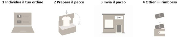 - Ogni capo deve essere restituito comprensivo di tutte le etichette, confezioni ed accessori originali ricevuti insieme all’ordine. La merce deve essere restituita insieme alla scatola originale, che è considerata a tutti gli effetti parte integrante del prodotto stesso e che non deve essere stata in nessun modo danneggiata e/o alterata